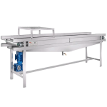 دستگاه نوار استیل آبکشی AMدستگاه نوار استیل آبکشیدر خط شستشوی میوه و سبزیجات در ادامه دستگاه های اتوماتیک شستشو قرار میگیرد. این دستگاه یک نوار استیل متحرک دارای دوش شستشو است که مرحله آخر آبکشی سبزیجات و میوه ها بر عهده این دستگاه میباشد. اتمام مراحل شستشو در این بخش انجام میشود. در واقع این مرحله در شستشوی دستی نیز با آبکشی نهایی انجام میشود.