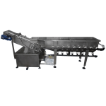 نوار نقاله خروجی از نوع مدولار آبی رنگ با پله های سفید ۵ سانتی متر